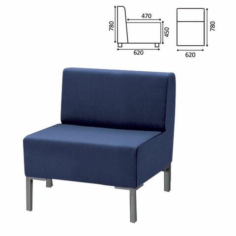 Кресло мягкое "Хост" М-43, 620х620х780 мм, без подлокотников, экокожа, темно-синее
