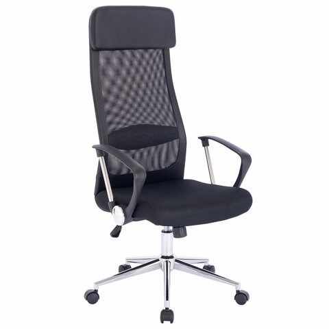 Кресло офисное BRABIX "Flight R EX-541", хром, ткань TW, сетка, черное, 532517