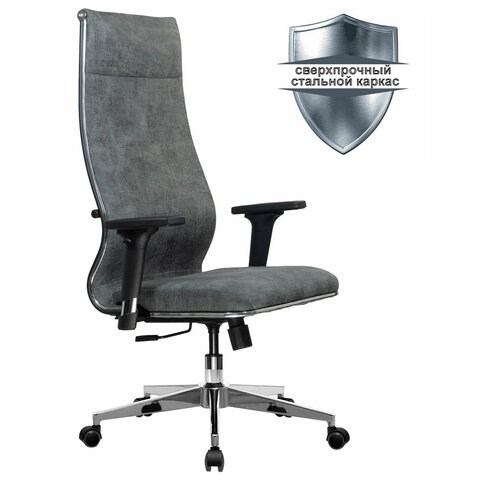 Кресло офисное МЕТТА "L1m 42/2D", хром, 2D-подлокотники, сиденье и спинка мягкие, велюр, темно-серое