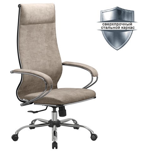 Кресло офисное МЕТТА "L1m 42", хром, сиденье и спинка мягкие, велюр, бежевое