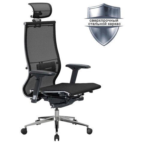 Кресло офисное МЕТТА "SAMURAI" S-3, с подголовником, сверхпрочная ткань-сетка, черное