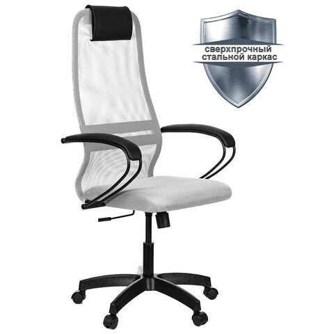 Кресло офисное МЕТТА "SU-B-8" пластик, ткань-сетка, сиденье мягкое, светло-серое