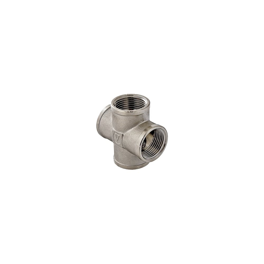 Крестовина 1/2 вн. Valtec VTr.760.N.0004 - четырехсторонний металлический фитинг, предназначенный для установки на трубопроводы систем отопления или водоснабжения из любого материала, будь то сталь, медь, латунь, пластик, металлополимер, полипропилен и т. д. Изделие служит для создания разъемных резьбовых соединений.