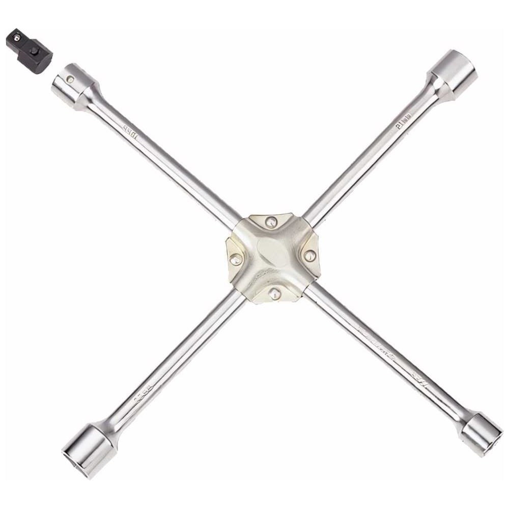 Ключ балонный колесный крестообразный KING TONY 400 мм 17, 19, 21, 22 мм 19911722 - это инструмент, который обязательно должен быть у водителя на случай вынужденной смены колеса в дороге. Также ключ применяется в автомастерских. Инструмент выполнен из прочной стали, имеет крестообразную форму и размеры наконечников: 17, 19, 21, 22 мм.