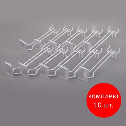 В комплекте 10 металлических крючков и 10 пластиковых ценникодержателей.