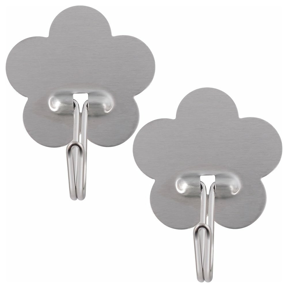 Крючок МУЛЬТИДОМ Цветы набор 2 шт. VL27-101 используют для подвешивания кухонной мелочи, принадлежностей для ванной комнаты, легких сумок, пакетов, одежды. Продукт изготовлен из коррозионностойкой (нержавеющей) стали. С обратной стороны изделия расположена самоклеящаяся пленка, которая обеспечивает надежную фиксацию к любой гладкой поверхности. Универсальный серый цвет крючка позволяет гармонично выглядеть в любом интерьере. Максимальная нагрузка до 1.5 кг. Область крепления следует предварительно обезжирить.