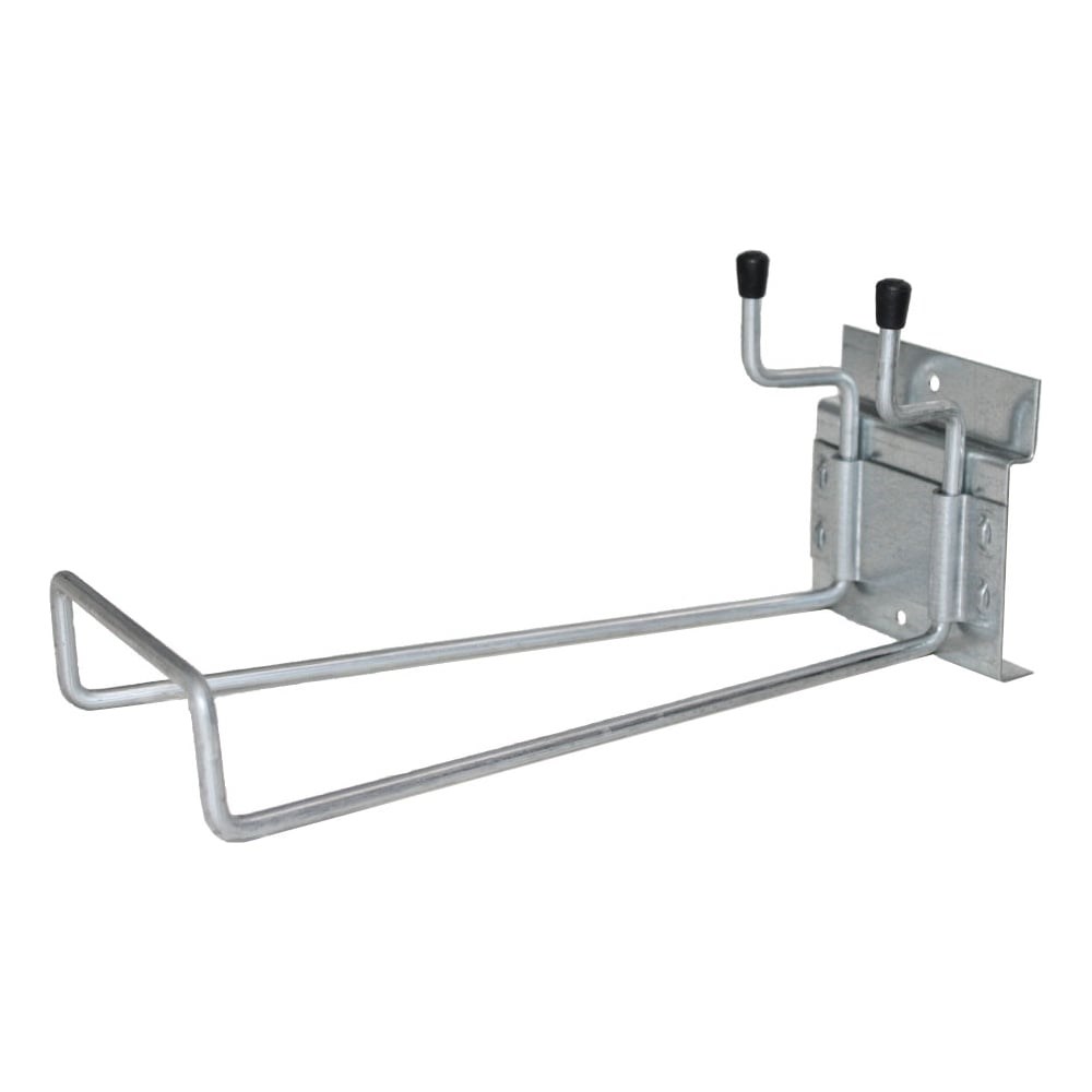Крюк для шланга LUCKY Guy L=230мм, 680 02 T03-01 0LG для установки на направляющую «LUCKY Guy» и обычную стену на дюбеля. С двумя крючками из оцинкованной проволоки ø6 мм по ГОСТ 3282-74 «Проволока стальная низкоуглеродистая общего назначения». Покрытие – горячий цинк толщиной 85 г/м². Рабочий вынос крюка 230 мм. Ширина передняя 120 мм, ширина у основания 50 мм. Вверху два одинарных крючка высотой 44 мм, глубиной 35 мм. Монтажная платформа: ширина 90 мм, высота 83,5 мм, толщина 1,5 мм. Накладка толщиной 1,5 мм. Соединение (крепление) «холодное перфорирование». Возможность крепления на два отверстия ø5,1 мм к стене на саморезы. Декоративные пластиковые заглушки – «капли дождя». Можно использовать внутри помещений и на улице. Идеальное решение для организации системы хранения в гаражах, хоз. блоках, мастерских, дачах, садах, автосервисе, классах труда и творчества, гардеробных, лоджий, фермерских хозяйств. Максимальная нагрузка на изделие: до 10 кг.
