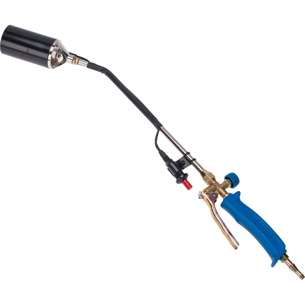 Горелка кровельная REXANT ГВ-600П используется для подготовки металлического основания, сушки и разогрева кровельного покрытия, устройства гидроизоляции. Оптимально подходит при отслоении покрытия, для ремонта кабельных линий, нагрева изделий и заготовок из черных и цветных металлов, обжига краски, сушки литейных форм. Подключается к баллону с газом пропаном с помощью газового шланга. Имеет систему пьезоподжига, что позволяет обходиться без использования спичек при розжиге пламени. Горелка обладает мобильностью, высокой силой подаваемого газа и практичностью. Сопло выполнено из латуни для повышения срока службы инструмента. С помощью вентиля легко регулировать длину пламени. Рычаг дежурного огня позволяет временно приостанавливать работы без повторного поджига газа.