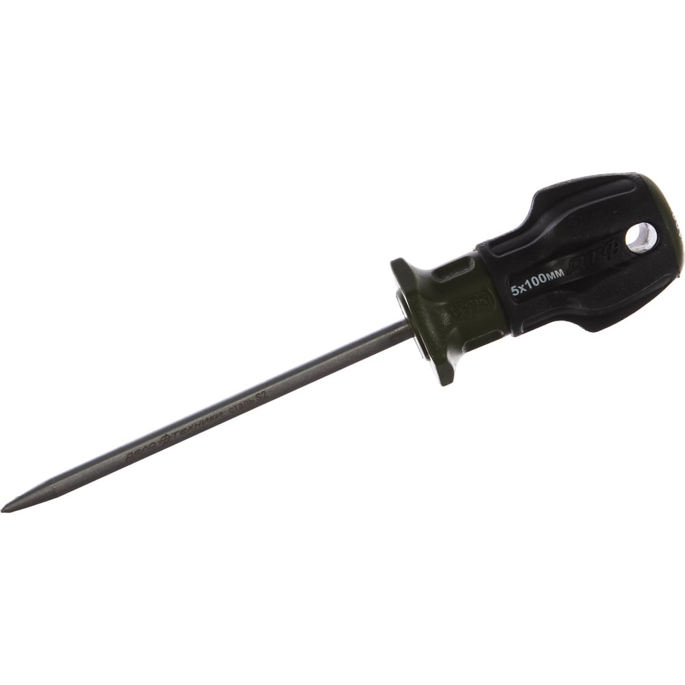 ХАРАКТЕРИСТИКА: Ø5×100 мм Закаленное жало Двухкомпонентная эргономичная рукоятка Защитный колпачок Диаметр жала: 5 мм Наконечник: круглый Длина жала: 100 мм Длина шила: 165 мм Сталь: S2 Твёрдость: 57—61 HRC Покрытие: Хромирование