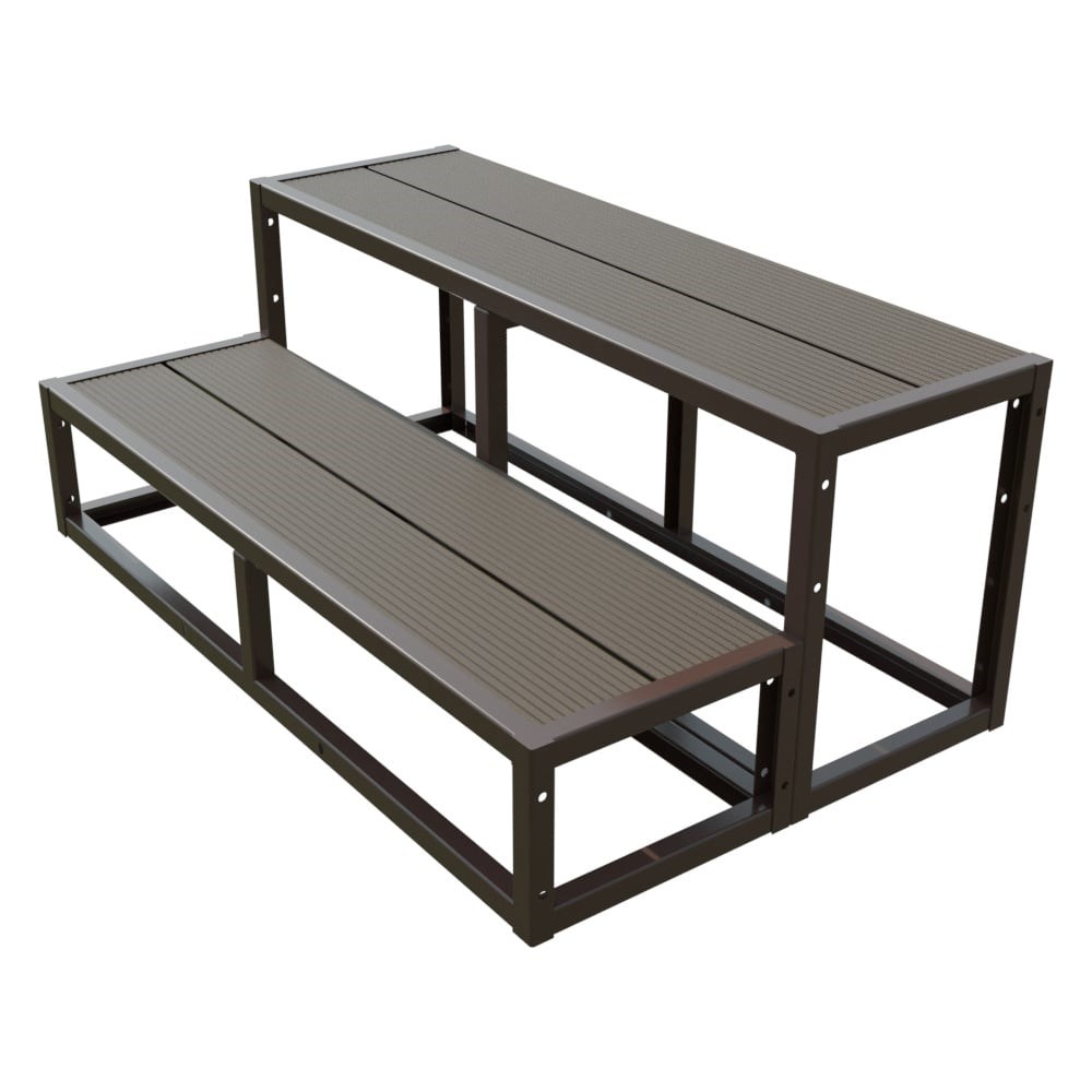 Каркас лестницы к дому две ступени с террасной доской ДПК. Другие модели лестниц, козырьков, навесов Вы можете посмотреть по серии ARSENAL AVANT. Наши преимущества: - Террасная доска ДПК на ступенях расположена в замкнутом металлическом контуре ( эстетический внешний вид, исключает сколы ДПК при эксплуатации и доставке). - Скрытый крепеж террасной доски ДПК ( эстетический внешний вид, предотвращает коррозию крепежа, удобно чистить ступени) - Отверстия - в наличии отверстия для крепления к стене, полу, перил, придверной решетки для обуви. Возможность соединения дополнительных ступеней между собой как по ширине, так и в глубину (фото). - Окраска - электростатическая порошковая краска цвет по RAL 8017 (темно-коричневый, шоколад) шагрень, под цвет террасной доски. - Каркас изготовлен из сложно-гнутого профиля 25х30х25х1,5 мм., на станках ЧПУ лазерной резки ГОСТ Р ИСО 9013-2022 и гибки металла по ГОСТ 18970-84. Весовая нагрузка до 500 кг. - Террасная доска ДПК (древесно-полимерный композит) влагостойкая, устойчивая к УФЛ, анти скользящая. - Малогабаритная упаковка (ступени вкладываются друг в друга, помещаются в легковой автотранспорт).