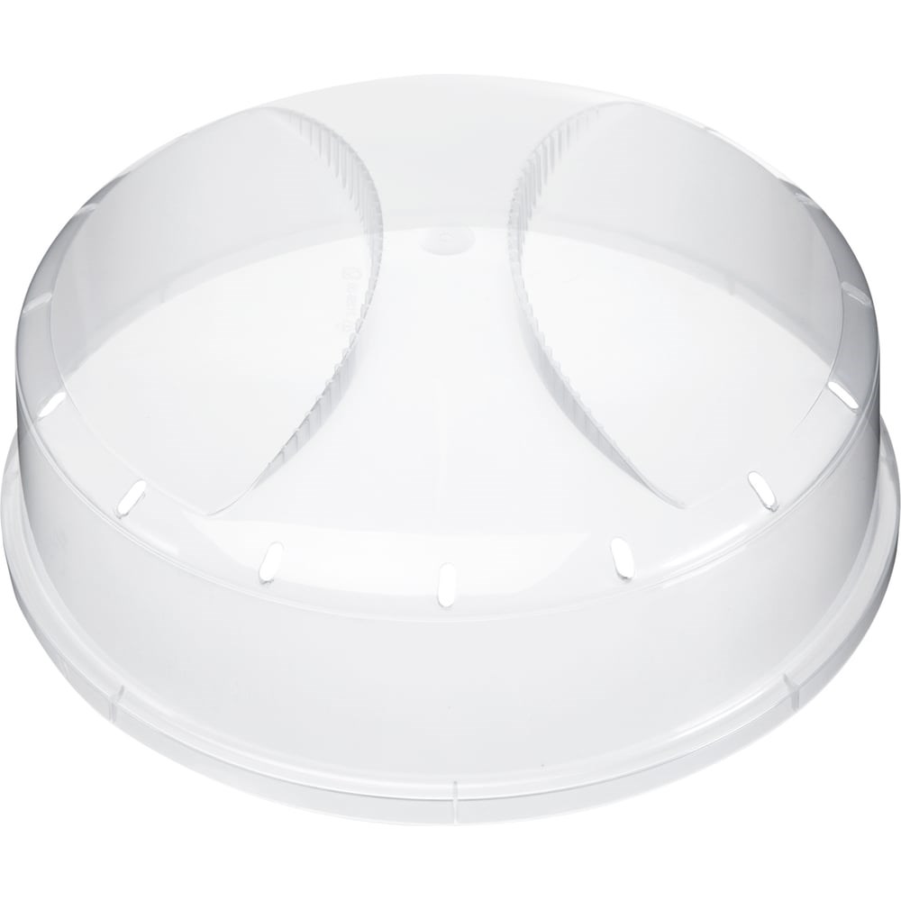 Крышка предохраняет внутреннюю поверхность микроволновой печи от загрязнения в процессе разогревания. Имеются отверстия для выпуска пара и удобная ручка для удержания крышки. Можно использовать в холодильнике как крышку для торта, сыра и т.п. Не впитывает запахи, можно мыть в посудомоечной машине.