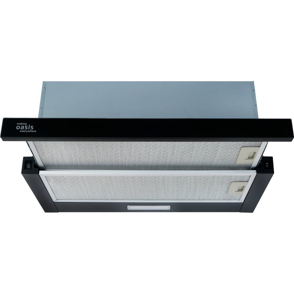 Телескопическая кухонная вытяжка making Oasis everywhere VT-60BG – это отличное решение для устранения неприятных запахов и пара. Устройство почти полностью встраивается в шкаф, снаружи остаётся только чёрная стеклянная панель. Таким образом достигается гармония с дизайном большинства кухонных гарнитуров. Выдвижной козырёк значительно увеличивает площадь рабочей зоны. Производительность вытяжки составляет 1000 м³/ч, что позволяет использовать её в помещениях площадью до 32 м².Удобство использования.Устройство имеет два уровня интенсивности работы, что позволяет выбрать мощность воздушного потока в зависимости от обильности выделения паров и запахов. Тумблеры в качестве органов управления обеспечивают лёгкость в настройке необходимого режима работы. LED-подсветка потребляет мало электроэнергии и служит в 20 раз дольше обычной лампочки.Польза и практичность.Жировой фильтр задерживает небольшие частицы копоти и жира, что увеличивает срок службы устройства. Вытяжка может работать в двух режимах: рециркуляции, когда грязный воздух проходит через угольный фильтр и возвращается обратно в помещение, и отвода, когда весь воздух удаляется из комнаты в вентиляционную шахту.Вытяжки making Oasis everywhere – уют для Вашей кухни.