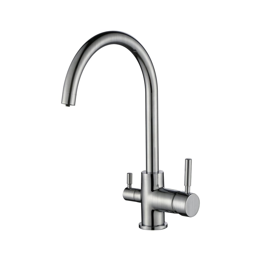 Кухонный Смеситель EMAR ЕС - 3007 сатин - дизайнерский смеситель для кухни отлично впишется в интерьер, создавая неповторимый вид. Однорычажный смеситель с простым управлением. Форма рукоятки сделана для плавного переключения режимов напора воды. Бесшумная работа смесителя и специальные изоляторы против нагрева ручек, доставят вам огромное удовольствие в использовании. Обладает гигиеническим и антибактериальным эффектом, имеет долгий срок службы. Однорычажный смеситель. Поворотный смеситель. Установочное отверстие под смеситель Ø 35 мм. Керамический дисковый картридж. Легкое подключение гибкими шлангами. Стабилизирующая пластина для увеличения устойчивости смесителя. Соответствует категории шумности. Стойкость к гидроударам. Соответствует стандартам DIN DVGW.