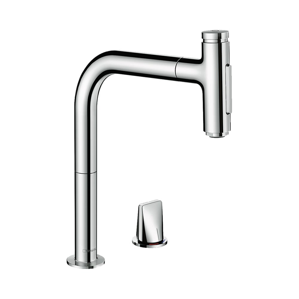 Кухонный смеситель Hansgrohe Metris Select M71 M7120-H200 однорычажный, на 2 отверстия, с вытяжным изливом 73819000