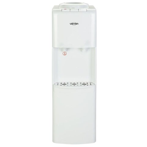 Напольный кулер для воды VATTEN V41WE с нагревом и электронной системой охлаждения. Цвет корпуса - белый, все панели изготовлены из качественного, устойчивого к ультрафиолету пластика. Два крана, управление кнопками - горячая и холодная вода. Кран горячей воды имеет "защиту от детей".