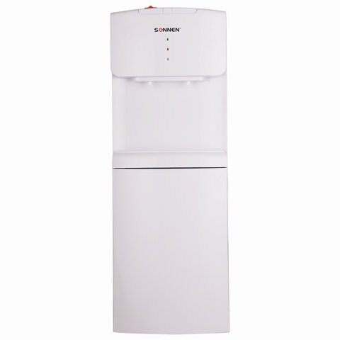Кулер SONNEN предназначен для раздачи воды комнатной температуры. Легок в обращении и содержании. Для использования необходимо поместить бутыль в специальное отверстие на верхней части водораздатчика. Данный кулер не оборудован функциями нагрева и охлаждения. Перед первым использованием необходимо слить около 0,5 л воды, чтобы очистить накопительный бак и трубки от скопившейся производственной пыли. Подача воды нажатием кнопки позволяет с легкостью наполнить любую емкость водой. В нижней части корпуса не предусмотрено дополнительное отделение для хранения, что позволяет держать привлекательную цену.