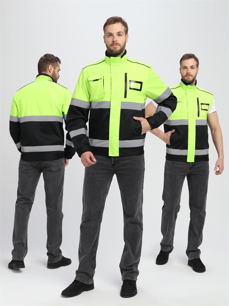 - Сигнальные цвета: Яркий дизайн обеспечивает высокую видимость, что особенно важно при работе на дорогах и в ночное время суток.