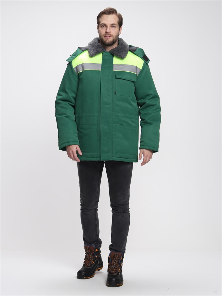 Куртка зимняя Бригада NEW (тк.Смесовая,210), зеленый/лимонный