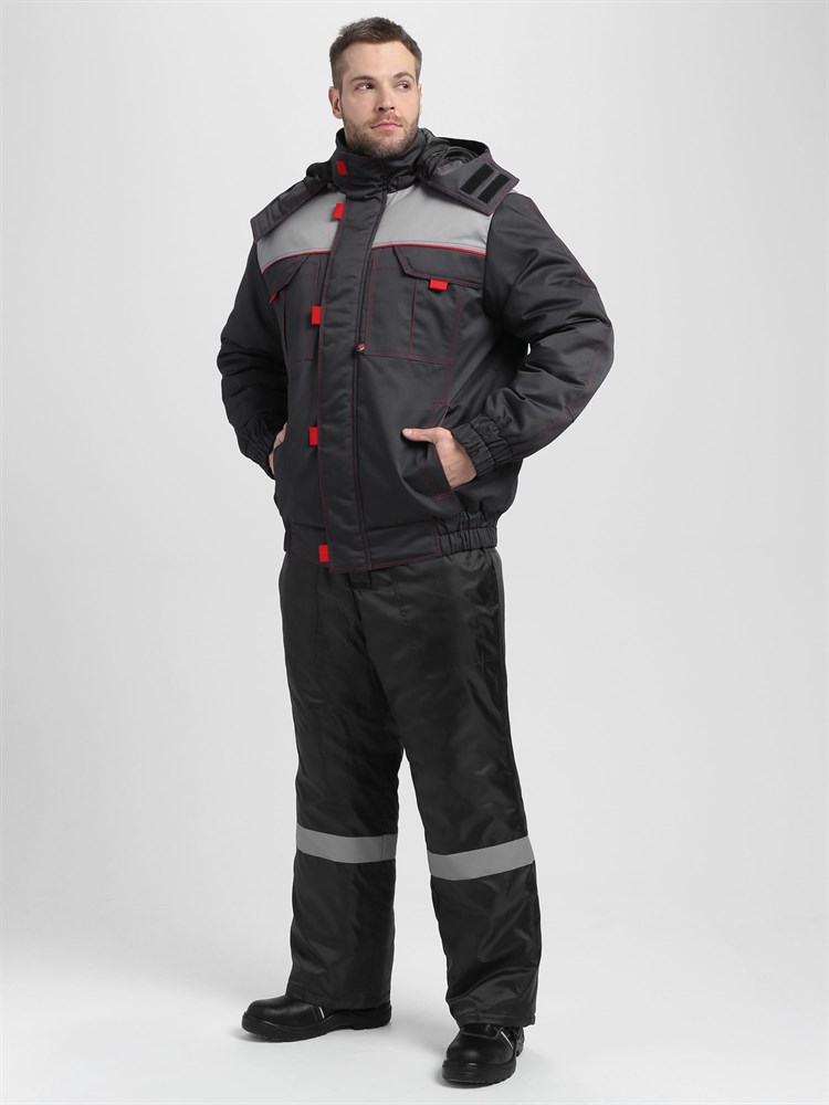 Куртка зимняя укороченная Флофт Премиум (тк.Смесовая,240), т.серый/св.серый/красный