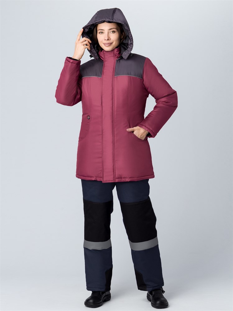 Куртка зимняя женская Сакрин (тк.Дюспо,80), бордовый/т.серый