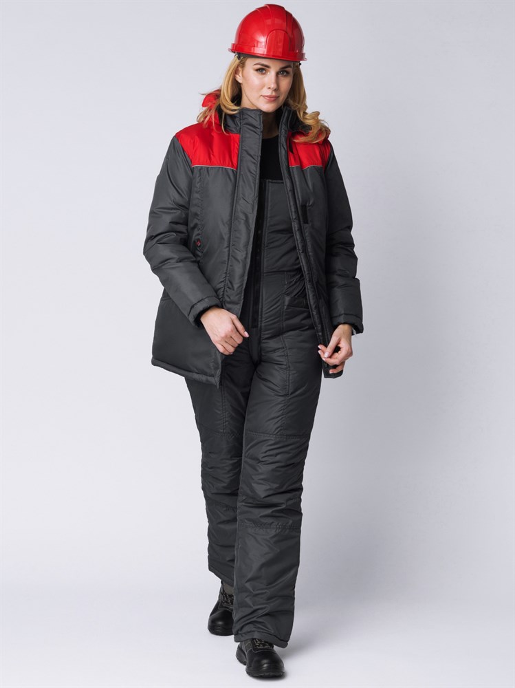Куртка зимняя женская Снежана (тк.Дюспо), т.серый/красный
