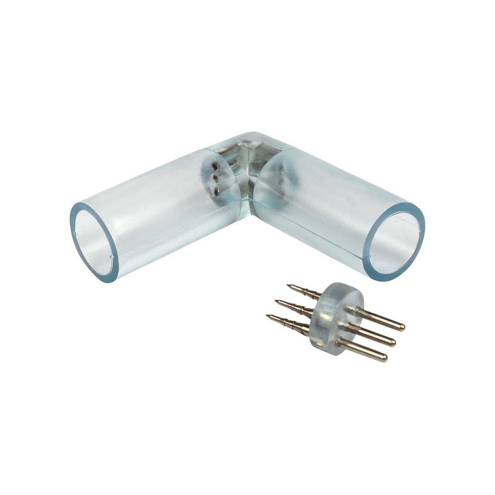 Муфта (коннектор) используется для соединения двух отрезков трехжильного дюралайта ∅13 мм между собой под углом 90 градусов. При соединении дюралайта с коннектором необходимо заизолировать свободное воздушное пространство коннектора морозостойким силиконовым герметиком, предотвращающим попадание влаги. Сверху данного соединения необходимо использовать термоусаживаемую трубку.