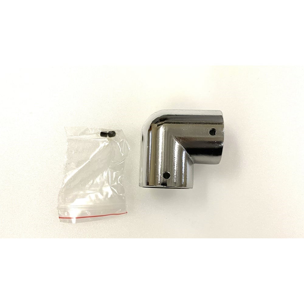 L-образное соединение - крепеж для двух труб диаметром 25 мм изготовлено из стали, покрытой хромом.