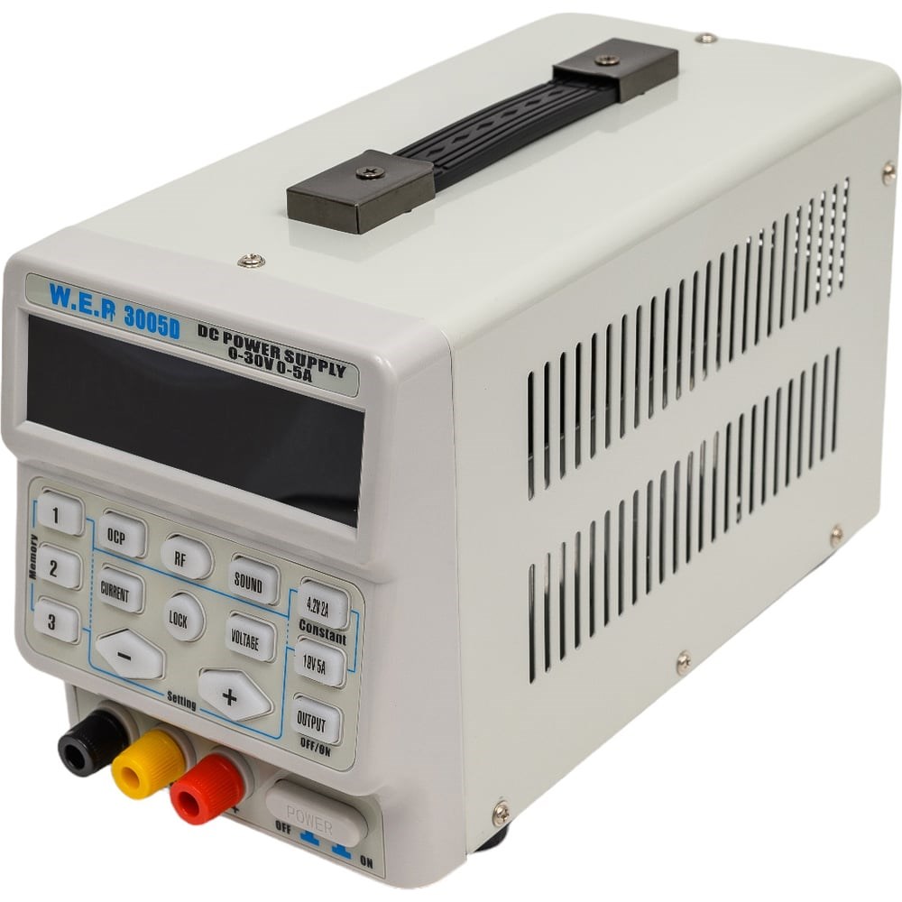 Параметры напряжения: Выходное напряжение 0-30V (шаг 0.01V). Точность ± 0,02V. Стабильность напряжения <0,01% + 3mV. Стабильность нагрузки <0,01% + 3mV. Время восстановления 100uS. Помехи <0,1% Vrms. Температурный коэффициент <300PPM/C. Параметры силы тока: Значение силы тока 0-5А. ыходная сила тока Регулируется от 0 до 5А с разрешением 0,01А. Точность 0,0001-0,0450А ± 0,0001А. 0,045-0,45А ± 0,001А. 0,45-5А ± 0,01А. Стабильность <0,1% + 3mА. Стабильность нагрузки <0,1% + 3mА. Помехи <1% Vrms. Параметры автоматической перегрузки (ОСР): Значение ОСР 0-5А Точность: ±0,01А. Сохранение настроек: Пользовательские настройки Кнопка 1 (3V). Кнопка 2 (5V). Кнопка 3 (9V). Зафиксированные настройки Кнопка 4.2V2A. Кнопка 19V5A.