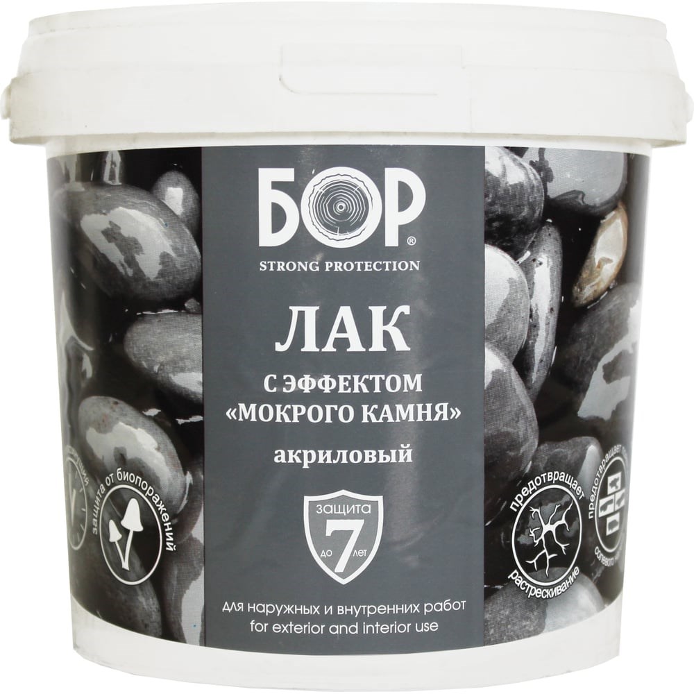 ЛАК С ЭФФЕКТОМ МОКРОГО КАМНЯ I БОР Для защитной окраски и долговременной защиты минеральных поверхностей (природный и искусственный камень, кирпич, бетон, черепица, шифер и др.), эксплуатируемых в атмосферных условиях и внутри помещений. ПРЕИМУЩЕСТВА · Быстро высыхает · Без запаха · Не содержит растворителей · Экологически безопасен · Сохраняет естественный цвет камня и кирпича, придает поверхности эффект «мокрого камня» · Лак увеличивает атмосферо- и влагостойкость обрабатываемых материалов · Предотвращает растрескивание материалов, появление плесени, высолов ПОДГОТОВКА ПОВЕРХНОСТИ Поверхности, поврежденные грибком плесени, следует обработать специальными составами. Поверхность высушить, очистить от пыли и провести контрольное нанесение на небольшом участке. ПОДГОТОВКА ЛАКА Лак готов к применению и не требует разбавления. Перед применением лак необходимо перемешать. Смешение с лаками других производителей не допускается.