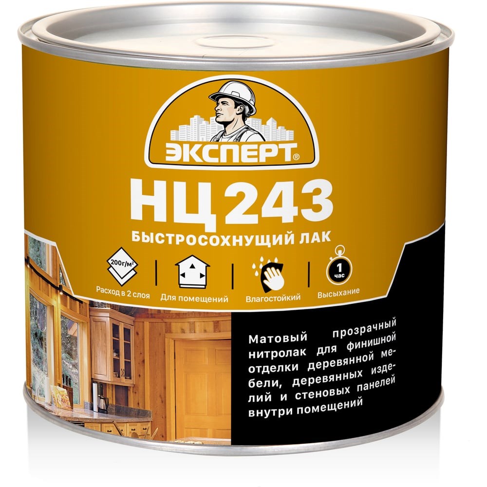 Лак для дерева ЭКСПЕРТ НЦ-243 1,7 кг 22815 - матовый быстросохнущий нитроцеллюлозный лак для финишной отделки и защиты мебели, деревянных изделий и элементов интерьера, стеновых панелей, ДВП, ДСП, а также для отделки декоративной и текстурной бумаги и картона.