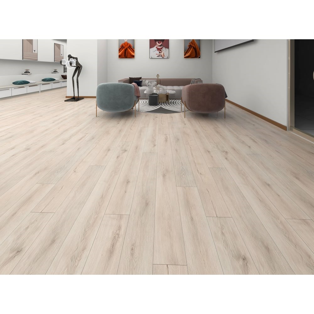 Виниловый пол Floorwood Дуб Лирика, 43 класс, толщина 4 мм, с микрофаской, влагостойкий, 2.635 кв. м 5204 предназначен для внутренней отделки помещений. Напольное покрытие является продуктом дизайнерской коллекции Unit, в которой учтены новейшие тренды современных технологий (кварц-виниловые полы на основе SPC). Четырехсторонняя фаска, выполненная по периметру каждого изделия, обеспечивает прекрасную амортизацию, помогает скрыть небольшие неровности основания и визуально выделяет каждую половицу. Продукт имеет 43 класс износостойкости, отлично прослужит в домашних условиях, а также в коммерческих помещениях с высокой проходимостью (в офисах, ресторанах, магазинах и т.д.). Замковая система Clic сделает укладку панелей простой, быстрой и обеспечит плотность и надежность стыковки.