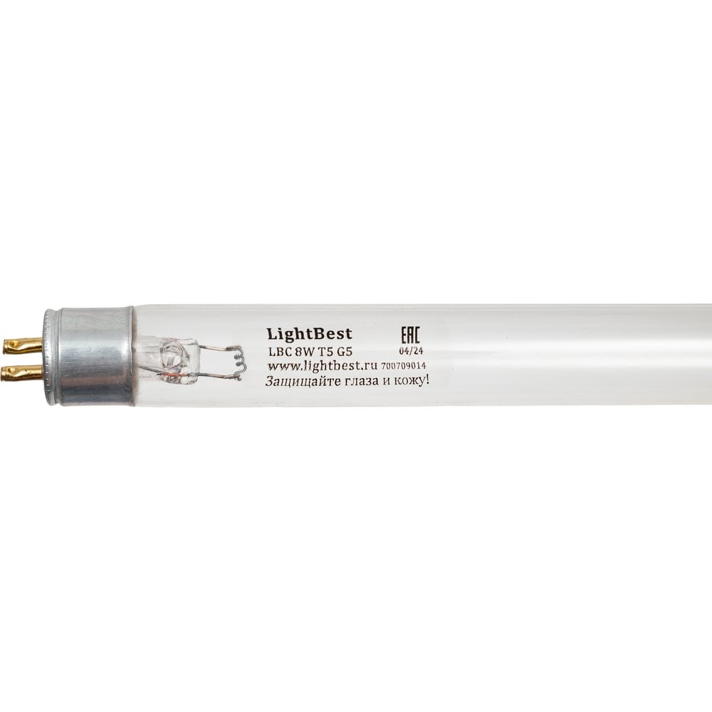 Безозоновая бактерицидная лампа (253,7нм) мощностью 8Вт с двухсторонним подключением (цоколь G5). Изготовлена из увиолевого стекла со специальным наполнением препятствующим выделению озона (185нм). Основное применение лампы: обеззараживание воздуха, поверхностей, воды. Внимание! Прямое попадание излучения вызывает ожоги кожи и глаз.