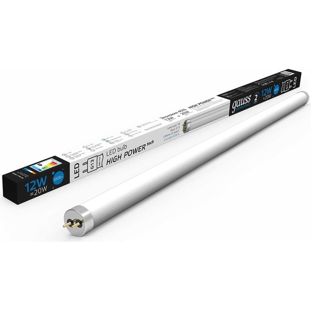 Лампа GAUSS Elementary T8, 12W, 1000lm, 6500K, G13, 600mm, стекло, LED, 1/20 93032 - выгодная замена стандартных люминесцентных ламп. Лампа имеет нормативную длину и без специальных доработок заменит люминесцентные лампы, поскольку устанавливается в стандартные светильники с патроном G13. Лампы Т8 светят ярче и экономят в 3 раза - больше электроэнергии по сравнению с люминесцентными аналогами. Еще одно отличие свет не идет внутрь светильника, поэтому не возникает потерь света при отражении.
