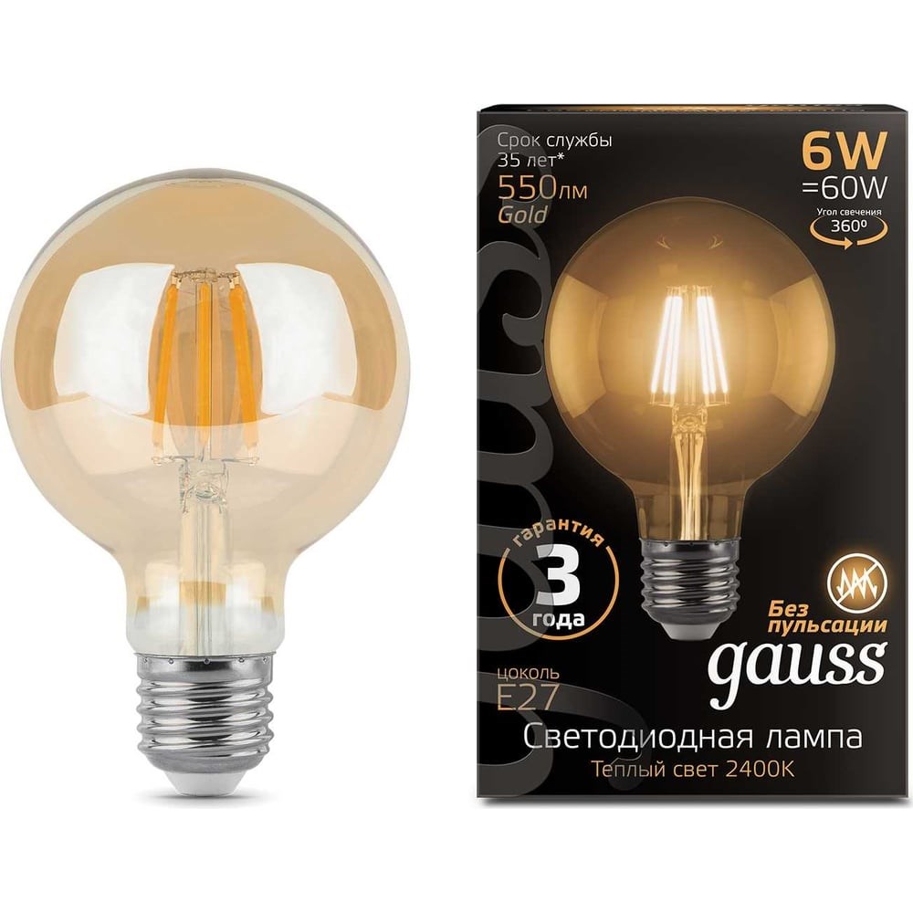 Лампа GAUSS LED Filament G95 E27 6W Golden 2400K