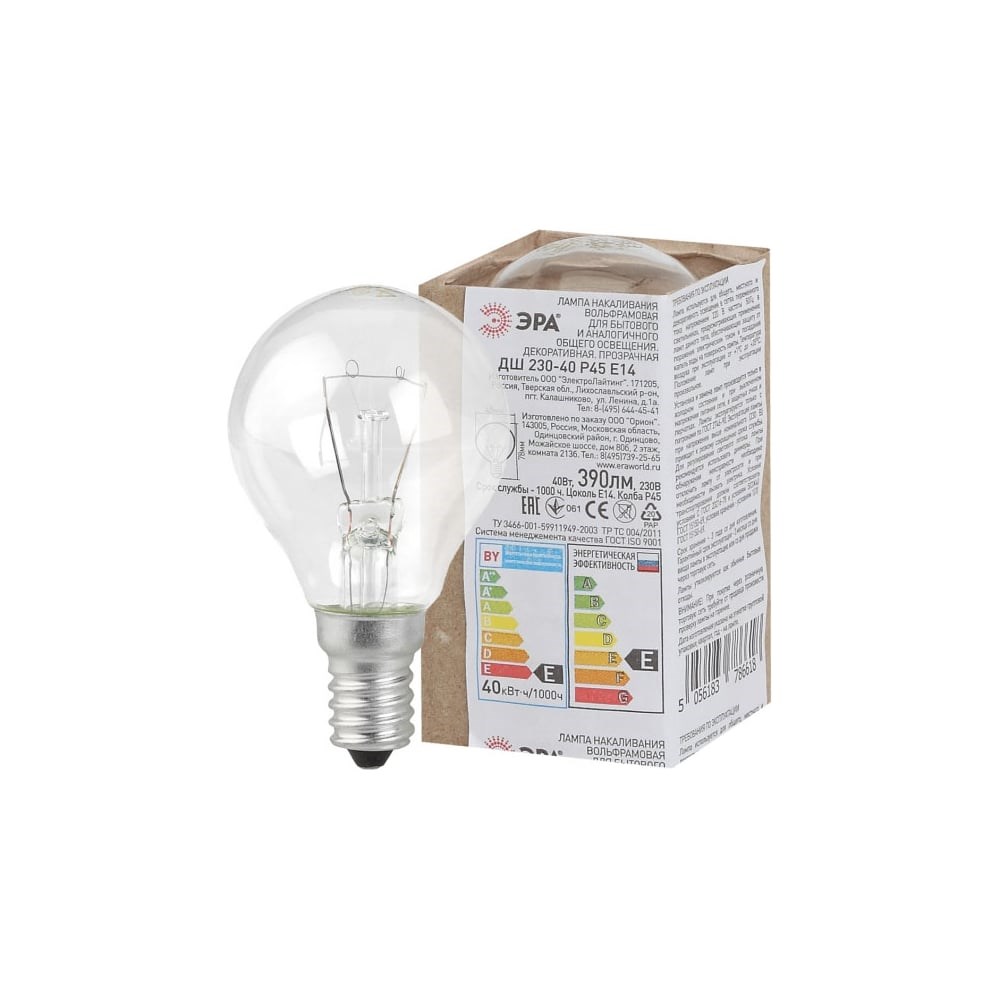 Лампа накаливания ЭРА ДШ, шар, 40Вт, 230В, Е14, в гофре Б0039132