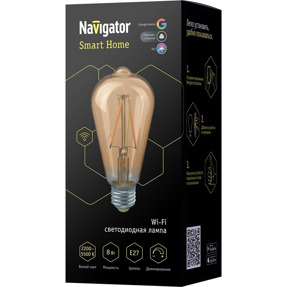 Умная лампа NavigatorСоздание световых сценариевТехнология СОВ FilamentБелый свет от теплого до холодногоДиммирование – плавная регулировка яркости свечения