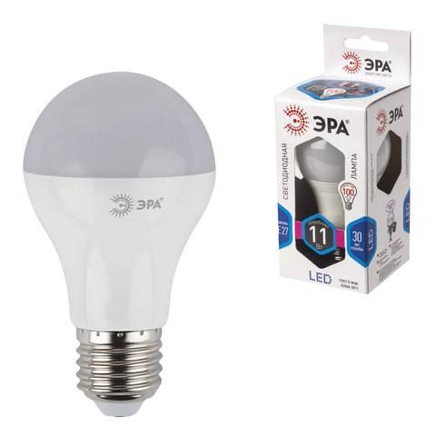 Лампа светодиодная ЭРА STD, 11 (100) Вт, цоколь E27, груша, нейтральный белый свет, 30000 ч., LED A60-11W-840-E27, Б0029821