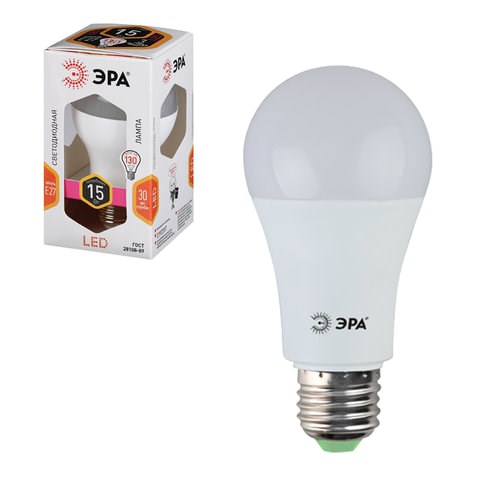 Лампа светодиодная ЭРА STD, 15 (130) Вт, цоколь E27, груша, теплый белый свет, 25000 ч., LED A60-15W-827-E27, Б0020592