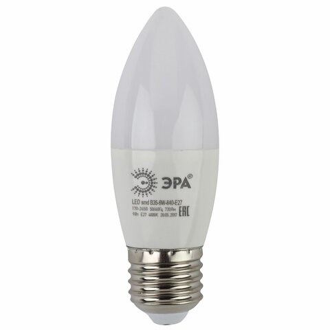 Лампа светодиодная ЭРА STD, 9 (80) Вт, цоколь E27, свеча, нейтральный белый свет, 35000 ч., LED B35-9W-840-E27, Б0027972