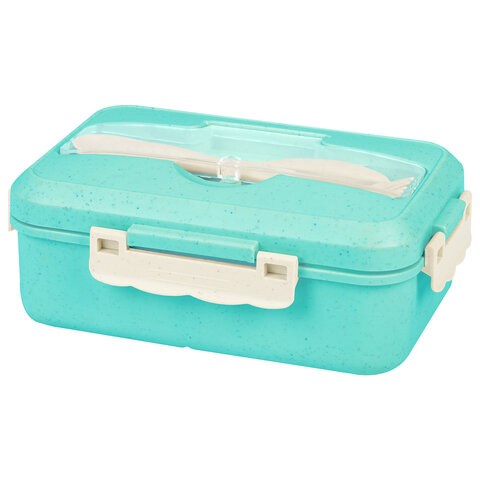 Ланч-бокс контейнер, 1 секция, 3 отделения, 1,4 л, ложка, вилка, 8х21х14 см, мятный, JOYLUX (ДЖОЙЛЮКС) ECO, 609344