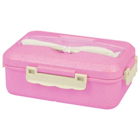 Ланч-бокс контейнер, 1 секция, 3 отделения, 1,4 л, ложка, вилка, 8х21х14 см, розовый, JOYLUX (ДЖОЙЛЮКС) ECO, 609345