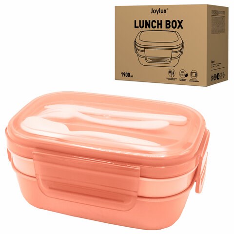 Ланч-бокс контейнер, 3 секции, 8 отделений, 1,9 л, ложка, вилка, нож, 10х21х14 см, персиковый, JOYLUX (ДЖОЙЛЮКС), 609351