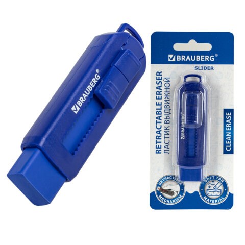 Ластик выдвижной BRAUBERG "Slider", 88х26х16 мм, синий, блистер, 271984