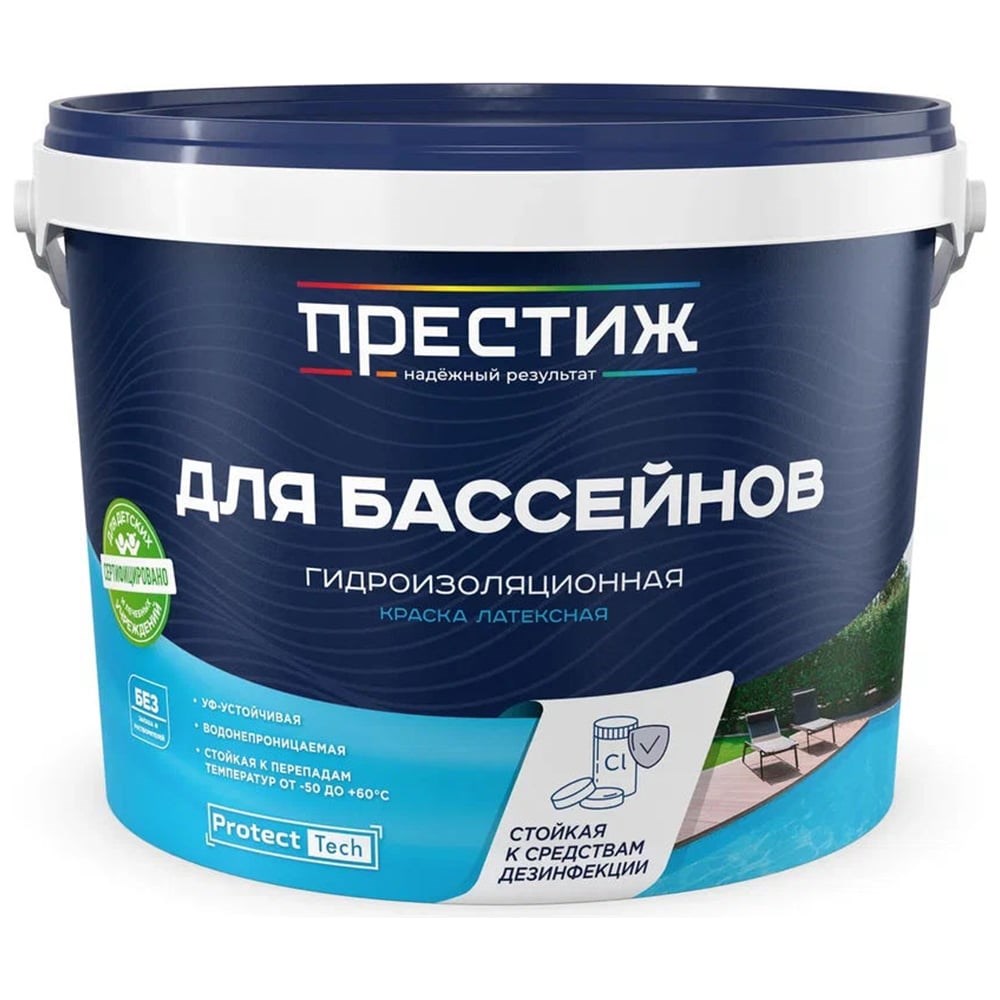 Предназначена для защиты и окраски поверхностей бассейнов. Состав: высококачественные акриловый латекс, пигменты и наполнители, целевые и антисептические добавки, вода; Способ нанесения: валик, кисть, краскопульт; Разбавитель: вода; Степень глянца: матовая Запах: отсутствует; Время высыхания: 1 ч; Расход: 120 - 160 г/м²; Температура нанесения: от +10 до +35 °С; Цвет: голубой; Вес: 2,4 кг.