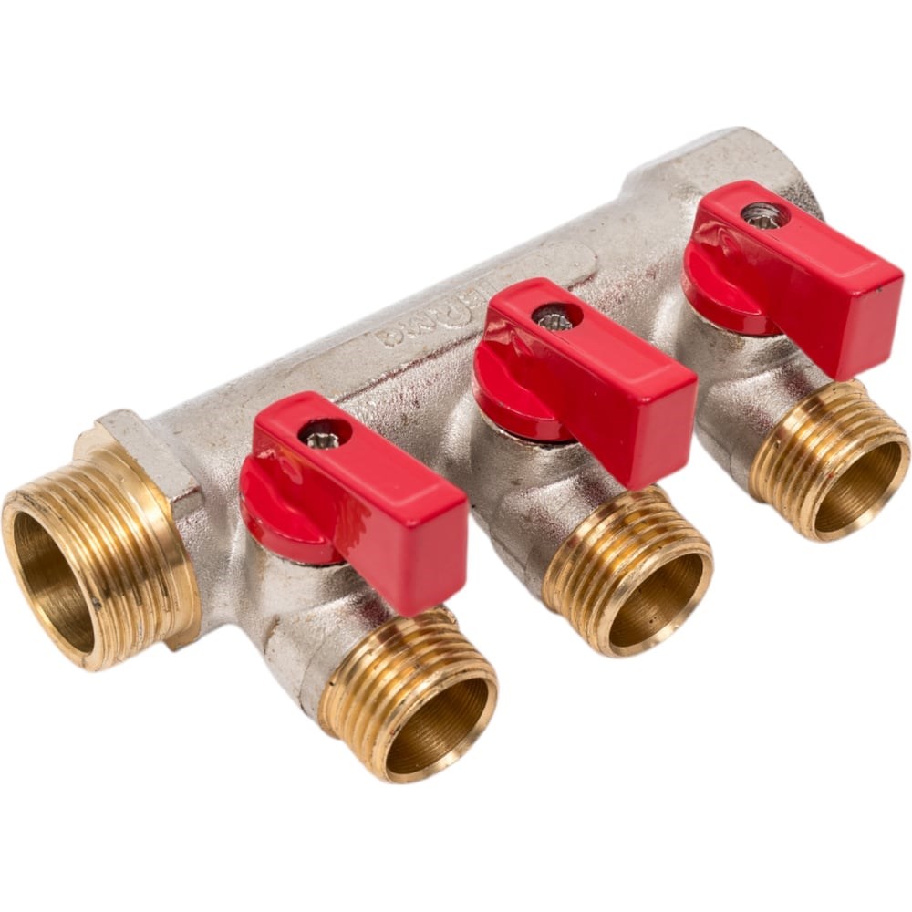 Коллектор латунный 3/4" в/н с 3-мя шар.кран. на 1/2" (наружная резьба) TERMA (14016) применяется для разветвления трубопроводов, а также позволяет изолировать часть системы в случае неисправности или ремонта без отключения всей системы. Коллектор ТЕРМА имеет трубную цилиндрическую резьбу (ГОСТ 6357, класс точности “В”) и предназначен для создания муфтовых соединений трубопроводов холодной, горячей воды, пара, жидких углеводородов, сжатого воздуха и прочих сред, не агрессивных к материалу коллектора. Рабочая температура используемой среды до +95°С, рабочее давление до 10 бар. Коллектора ТЕРМА производят из латуни марки CW 617N с никелированным покрытием.