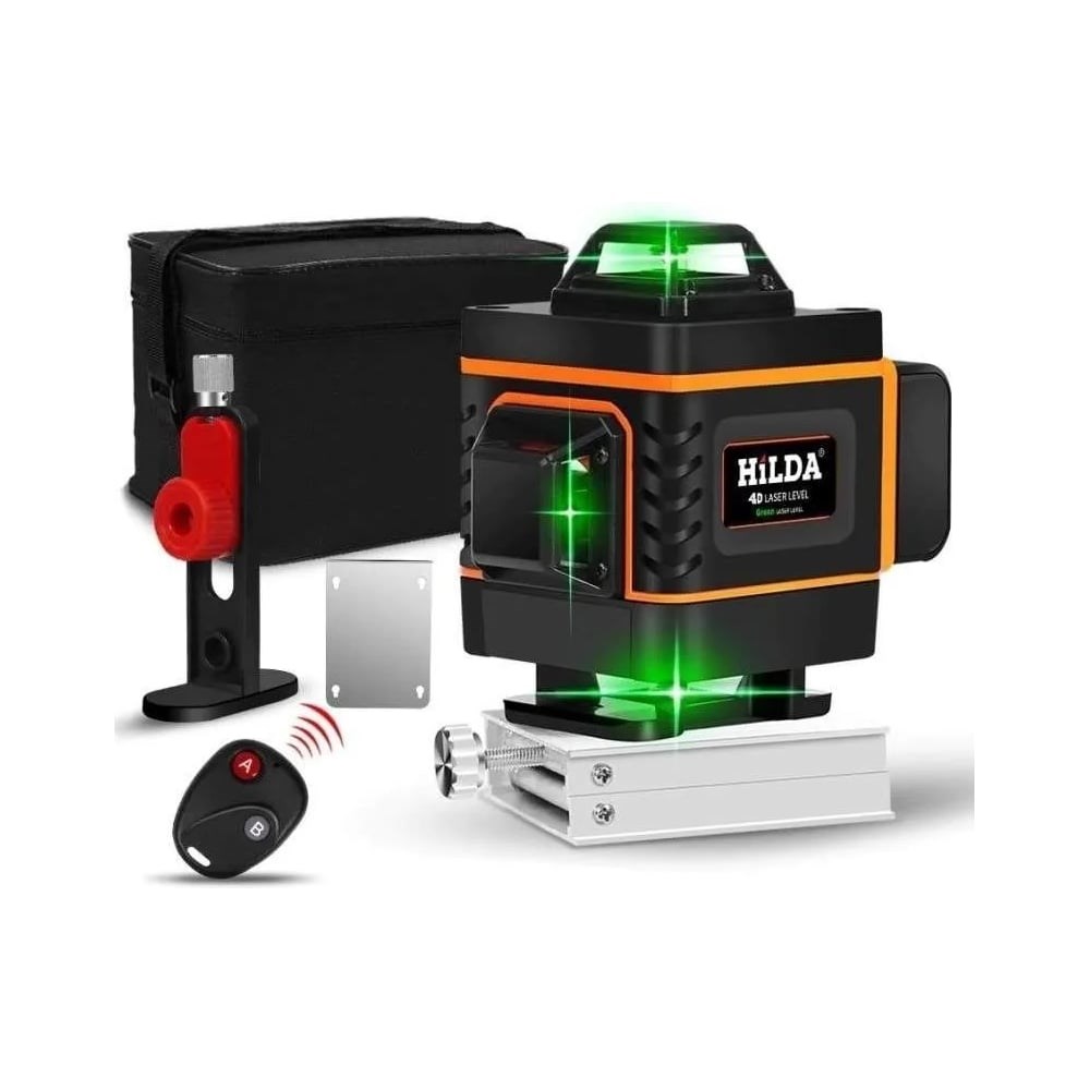 Самовыравнивающейся Лазерный уровень нивелир4Д/16 линий. У данной модели 16 линий с построением плоскостей в 360 градусов. То есть уровень имеет 4 форточки каждая из которых строит лучи в 4х направлениях( вокруг оси). Два горизонта вверху и внизу уровня (нижний луч удобен при стяжке и укладке плитки). И две вертикальные плоскости с перекрещиванием под прямым углом. (есть точка отвеса). Цвет луча зеленый. Лучи тонкие и яркие, в помещении видно даже в яркую солнечную погоду. Диапазон до 30 метров. Работает как от сенсорных кнопок, так и с пульта. Аккумулятор заряжается за 1.5- 2 часа и способен беспрерывно работать до 8 часов на одном луче. В комплекте: Противоударная сумка кейс, Лазерный уровень Аккумуляторная батарея = 2шт Зарядное устройство Пульт управления Микролифт (Платформа с подъемным механизмом до 10см) Магнитный кронштейн с пластиной для крепления нивелира на стену Переходник на штатив с родной резьбы сечением 1/4 на более крупную 5/8. Все уровни проходят предпродажную поверку и при необходимости калибруются. Гарантия точности 1-2мм на 10 метров