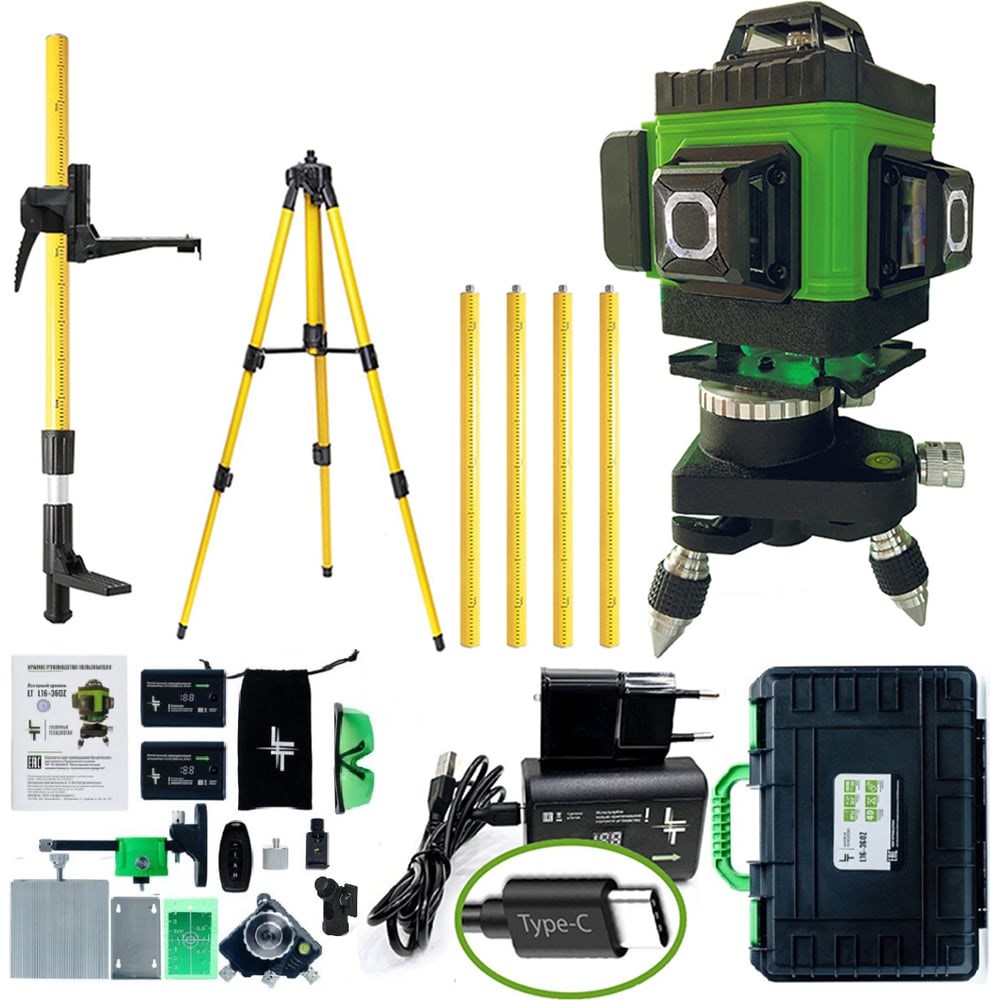 Профессиональный лазерный уровень LT L16-360В + штатив 3.6 м + тренога 1.6 м выстраивает 16 лазерных линий. Нижний горизонт идеально подходит для работ по заливки полов и стяжки. Работает от Li-ion батареи 6000 Мач. Особенности: до 8 часов работы при постоянном свечение луча лучи включаются как с сенсорных кнопок на корпусе устройства, так и с пульта дистанционного управления зеленый цвет луча лучше виден на свету и менее вреден для глаз дальность до 50 метров (в зависимости от освещения) при помощи приемника (отражателя) лазерных лучей (приобретается отдельно) можно работать в солнечную погоду противоударный и влагозащитный кейс для переноски Уровень проходит трехступенчатый контроль проверки качества сборки на заводе-производителе и инспекционный контроль приемки товара. Калибровка устройств производится на заводе с помощью специального оборудования, сертифицированного по международным стандартам и только специалистами самого высокого уровня допуска.