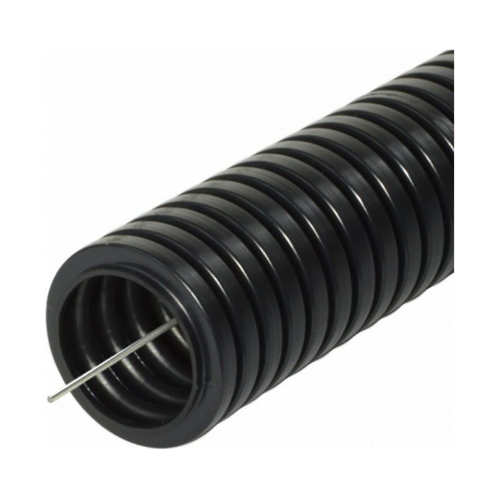 Легкая гофротруба УРАЛ ПАК ПНД 20 мм с протяжкой "Строительная" черная, м ГФ-1102020-100 применяется для скрытой или открытой электропроводки по стенам, потолкам, полам жилых, административных и промышленных помещений.