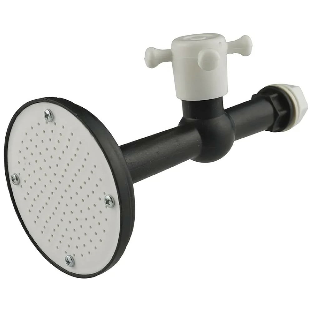 Лейка для душа- садовый распылитель ЭлБэт 2220 устанавливается на различные резервуары с целью организации садового летнего душа. Кран предназначен для установки на баках различной емкости с целью организации душевых кабин. Выполнен из пластика, обладает повышенной прочностью и коррозионной стойкостью, лицевые поверхности полированы и пригоден для подачи горячей воды. Снабжена встроенным шаровым краном вентильного типа, открывается и закрывается вращением маховика, герметично, может регулировать струю. Максимальное рабочее давление напора не должно превышать параметры 0,63 - 1 МПа.