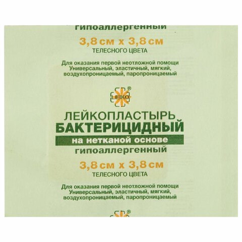 Лейкопластырь бактерицидный LEIKO комплект 100 шт., 3,8х3,8 см, на нетканой основе, телесного цвета, 213872